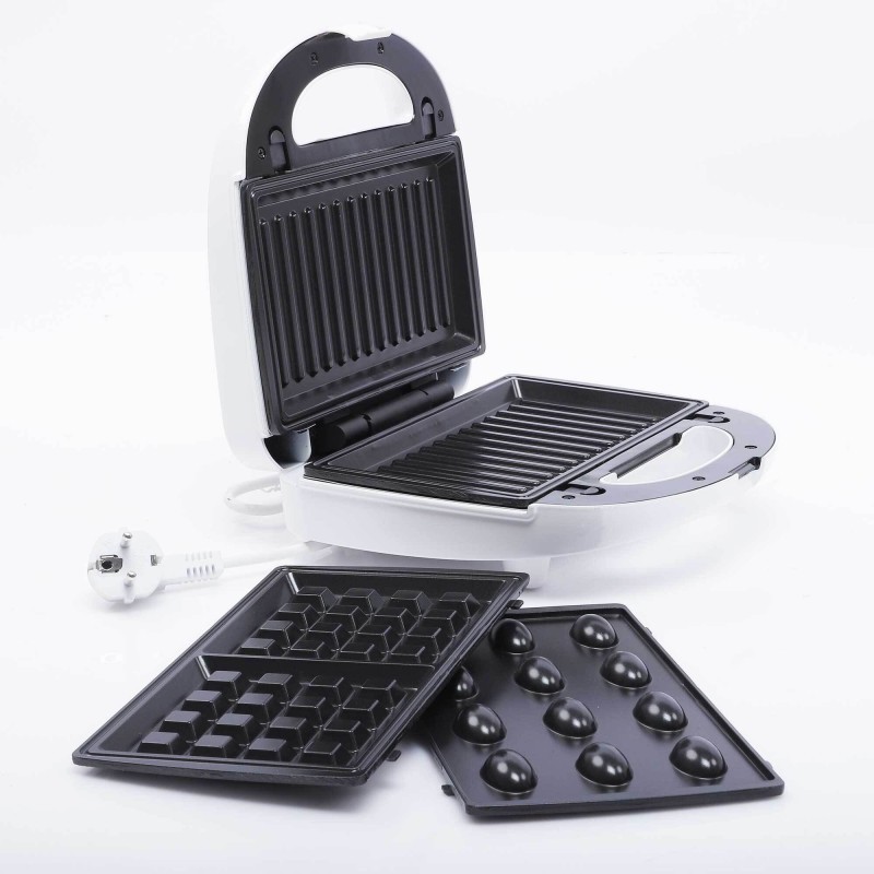 Appareil De Cuisson 3en1 Florence Panini-Gaufre-Zouza 750W HK-213R – Tension : 220-240V – Fréquence : 50-60Hz – Puissance : 750W – Dimension Plaque : 26*22cm – 2 Gaufre – 12 Zouza – Système de verrouillage – Indicateur d’avertissement LED – Couleur : Blanc – Garantie : 1 an