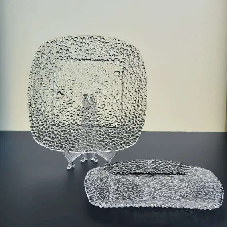 Assiettes à salade carrées en verre transparent texturé 32 cm