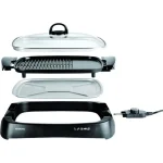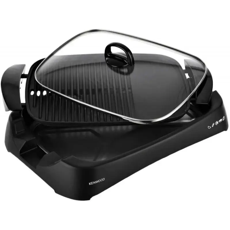 Barbecue Électrique KENWOOD Health Grill – Puissance: 1700 Watts – Matériel en Métal – Plaques antiadhésives – Contrôle thermostatique – Nettoyage facile – Réglages de chaleur variables – Avec couvercle en verre – Dimensions: 9,8 x 51 x 35 cm – Poids: 4,6 kg – Couleur Noir – Garantie: 1an
