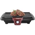 Puissance : 2000W – Surface de cuisson: 38 x 24,5 cm – Plaque en fonte d’aluminium antiadhésive – Micro interrupteur de sécurité ; l’élément chauffant s’éteint automatiquement lorsque le gril est retiré du barbecue – Faible génération de fumée grâce au plateau grill rempli d’eau – Nettoyage au lave-vaisselle (sauf l’élément chauffant) – Couleur noir – Garantie 1 an