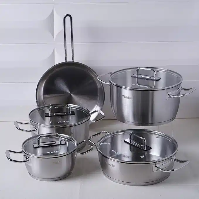 Batterie De Cuisine VIVALDI Crystal– 9 Pièces en Inox 18/10 Haute Qualité