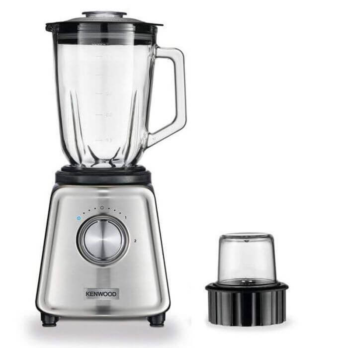 Blender KENWOOD – Puissance: 800 Watts  – CapacitĂ© du Bol: 2 Litres  – Nombre de vitesses: 2 vitesses + fonction d’impulsion – Bol en verre – Fonction de broyage de la glace – Moulin pour moudre le cafĂ© et les Ă©pices – Couleur: Inox – Garantie :1 an