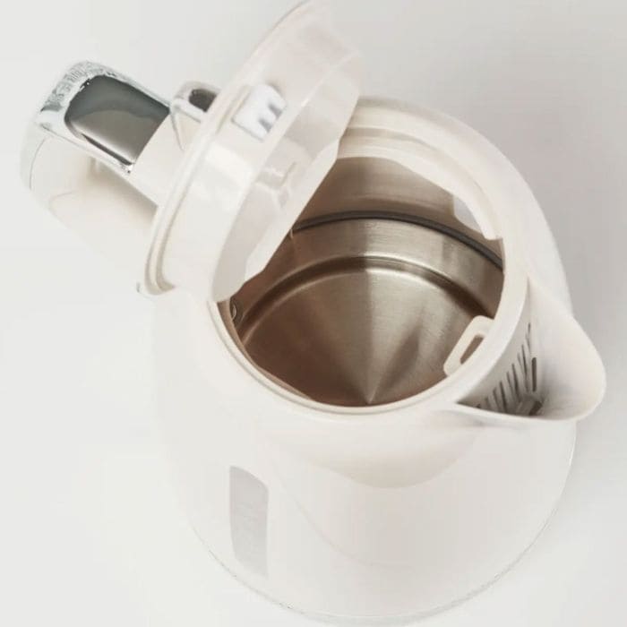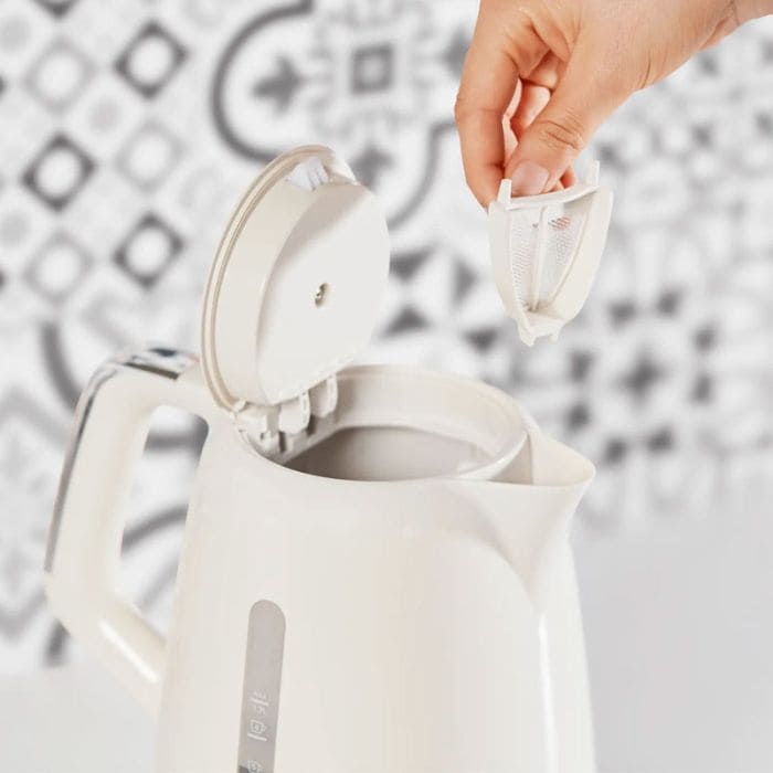 Bouilloire MOULINEX Soleil – Puissance: 2400 watts – Capacité: 1.7 litres ( jusqu’à 7 tasses) – Niveau d’eau visible et gradué – Bouton marche / arrêt rétroéclairé – Arrêt automatique une fois que l’eau bout – Couvercle articulé – Filtre anti-calcaire amovible – Matériau du corps: Plastique – Pratique et sécurisée – Couleur: Blanc – Garantie: 1 an