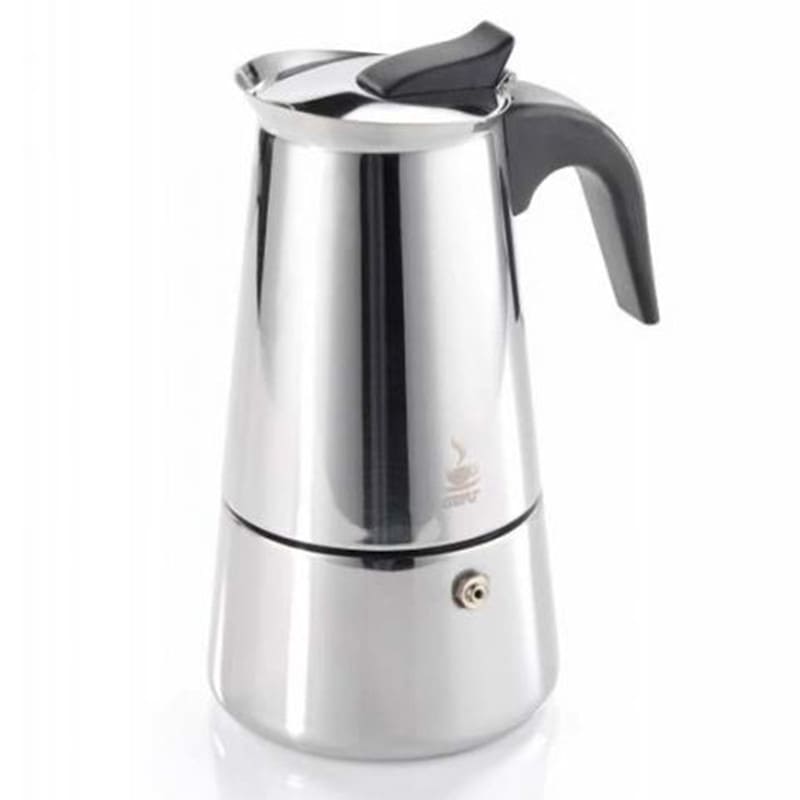 Cafetière Italienne Emilio Gefu – Nombre de Tasses: – Lavable au lave-vaisselle: oui – Matériel: Acier inoxydable de haute qualité – Pour préparer lexpresso- Adapté à la cuisinière électrique, à gaz, à induction et vitrocéramique- Bec verseur – Couleur : Inox