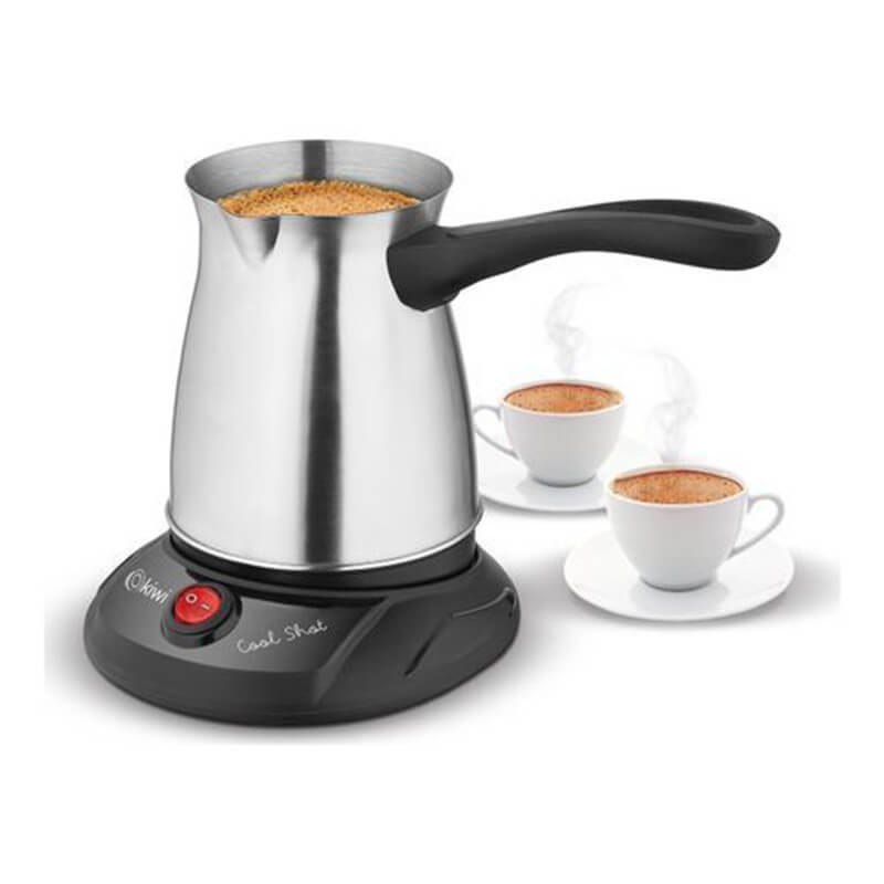 Cafetière Turc KIWI – Puissance: 440 Watts – Capacité du réservoir: 400 ml à 6 Tasses – Sécurité d’arrêt de l’eau – Bouton marche / arrêt – Corps en inox – Couleur: Inox – Garantie: 1 an