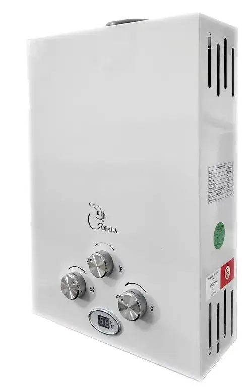 Chauffe Bain COALA – Type de Gaz: Gaz bouteuille – Débit d’eau Chaude: 6Litres/min – Existe en deux Modéle: GPL / GN – Conforme aux normes tunisiénne – Equipés d’un système d’allumage automatique – Couleur: blanc – Garantie: 1 an