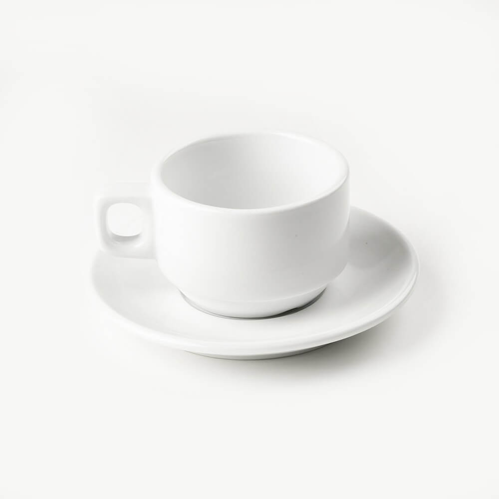 Tasse et sous-tasse à café/thé. En porcelaine très résistante, fabriquées en Chine. Passe au four, au four à micro-ondes et au congélateur.