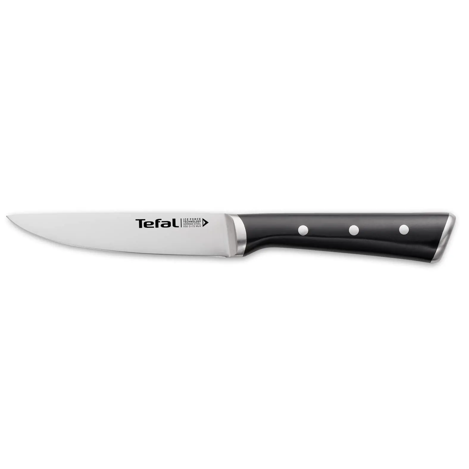 Couteau Universel TEFAL Ice Force – Dimension: 11 cm – Lame en acier inoxydable de haute qualité – La lame est refroidie à -120°C pour une conservation exceptionnelle du tranchant – Poignée ergonomique – Design traditionnel et élégant – Couleur: Noir