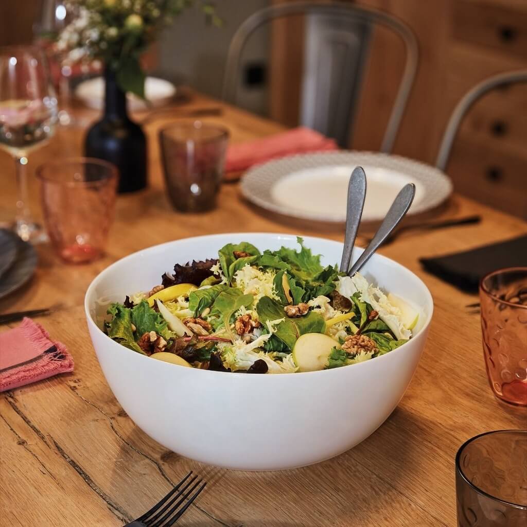 Ce saladier s’avère tout à la fois solide (caractéristique importante pour un produit utilisé souvent, et régulièrement soumis à des manipulations énergiques) et pratique à utiliser grâce à son poids contenu.