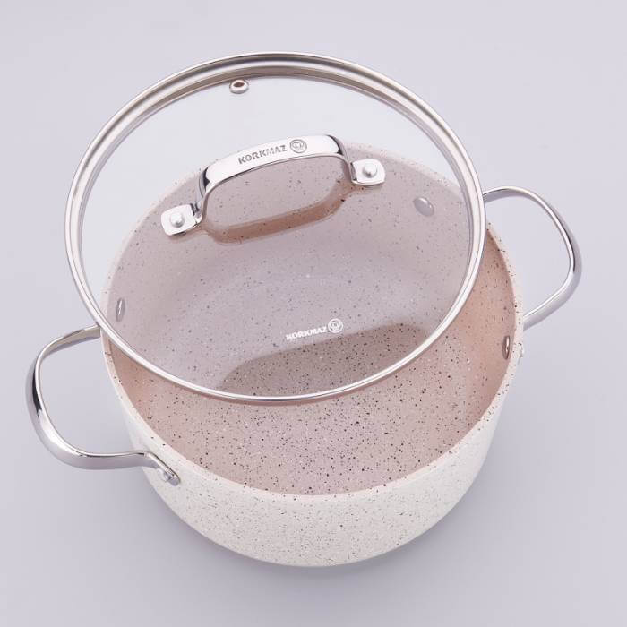 Korkmaz Granita , d’une capacité de 24×12,5 cm / 5 l , son Revêtement PTFE d’aspect volcanite avec une excellente propriété antiadhésive sur les surfaces internes , avec un Résistance supplémentaire et résistance aux rayures , son Technologie de production respectueuse de l’environnement , Facile et simple à nettoyer – Il est durable a long terme , pratique et permanente.