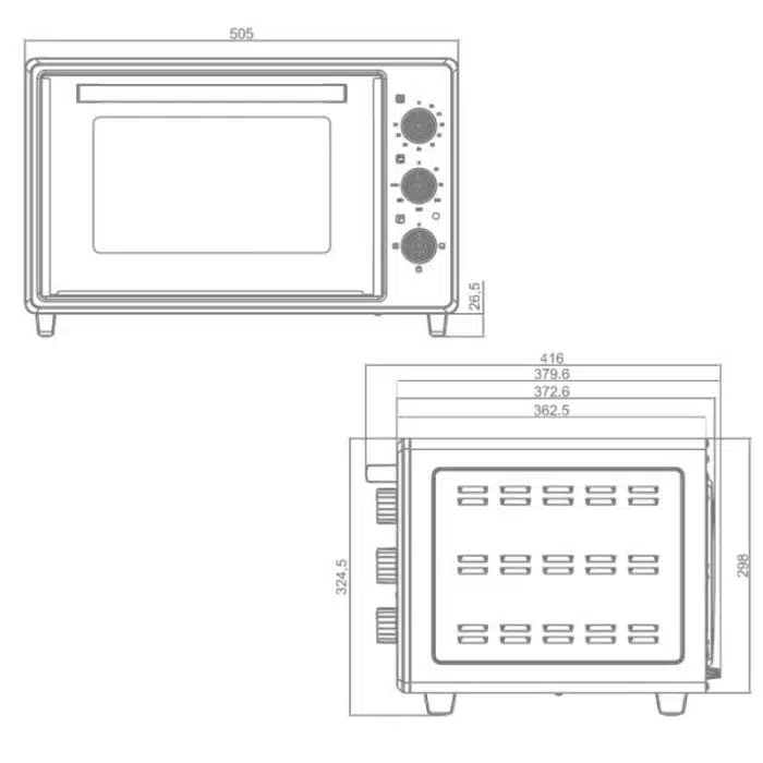 Four Électrique Focus – Puissance: 1800 Watts – Volume: 35 Litres – Température: Réglable jusqu’à 250°C – Minuterie: 90 min – 4 Fonctions – Alimentation: 220-240V/50-60hz – Lampe – Résistance Inox – 1 x Grill – 1 x Plateau rectangulaire – Dimensions: L x H x P: 50.5 x 32.45 x 37.96 cm – Couleur: Noir – Garantie: 1an