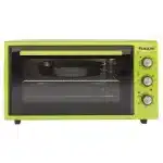 Four Électrique Focus – Puissance: 2000 Watts – Volume: 45 Litres – Température: Réglable jusqu’à 250°C – Minuterie: 90 min – Chaleur tournante – 6 Fonctions – Fonction Yaourt – Cavité Emaillée – Thermostat capillaire – Alimentation: 220-240V/50-60hz – 1 x Grill – 1 x Plateau rectangulaire – 1 x Plateau Rond – Dimensions: L x H x P: 50.5 x 32.45 x 37.96 cm – Couleur: Vert – Garantie: 1an