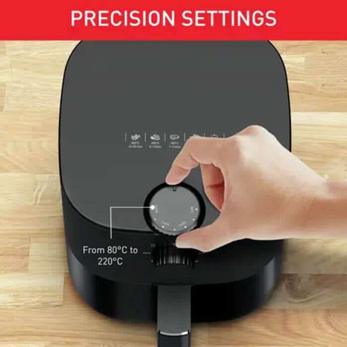 Friteuse Sans Huile TEFAL – Capacité: 3.5 Litres( Idéale de 2 jusqu’à 4 personnes) – Température: Réglable jusqu’à 200 °C– Minuteur: 60min – Technologie air chaud – Interrupteur marche/arrêt – Panier anti-adhésif compatible lave-vaisselle pour un nettoyage facile et une cuisson sans stress – Design compact – Couleur: Noir – Garantie: 1an