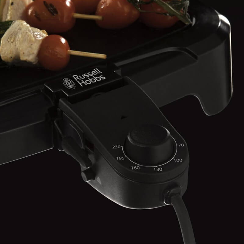 Grille Viande Classics Russell Hobbs 19800-56 – Puissance : 1500W – Surface de cuisson : 50 cm x 26 cm – ente d’Ă©coulement pour rĂ©cupĂ©rer les graisses ou l’excès jus de cuisson – Grande surface de cuisson idĂ©ale pour toute la famille – TempĂ©rature rĂ©glable pour une cuisson maitrisĂ©e – Câble amovible pour un service directement Ă  table et un rangement pratique – Nettoyage en un coup d’éponge, revĂŞtement antiadhĂ©sif – Couleur : Noir – Garantie : 1 an