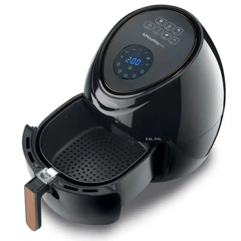 – Puissance: 1800W – Capacité: 5.5 Litres – Thermostat réglable: 80 à 200°C – Nombre de Programmes: 7 programmes – Protection contre la surchauffe – Afficheur digital – Bol antiadhésif amovible avec poignée – Pieds anti-dérapants – Circulation d’air: Rapide – Éléments chauffants: En acier inoxydable – Facile à nettoyer – Couleur: Noir