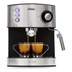 Machine à café Espresso UFESA CE7240 – Puissance 850W – Réservoir de grande capacité de 1.6L – Pompe à pression 20 bars – matériel: acier inoxydable – Option double préparation de café: Système traditionnel ou monodose – Cuiseur vapeur turbo réglable – 2 Filtres BAR CREAM – Porte-filtre en métal avec filtre pour 1 ou 2 tasses – Réservoir d’eau amovible – Bac pour recueillir les gouttes avec récipient pour le marc de café – Poids: 3,65 kg – Dimensions: 31,5 x 26 x 32 cm – Garantie 1 an