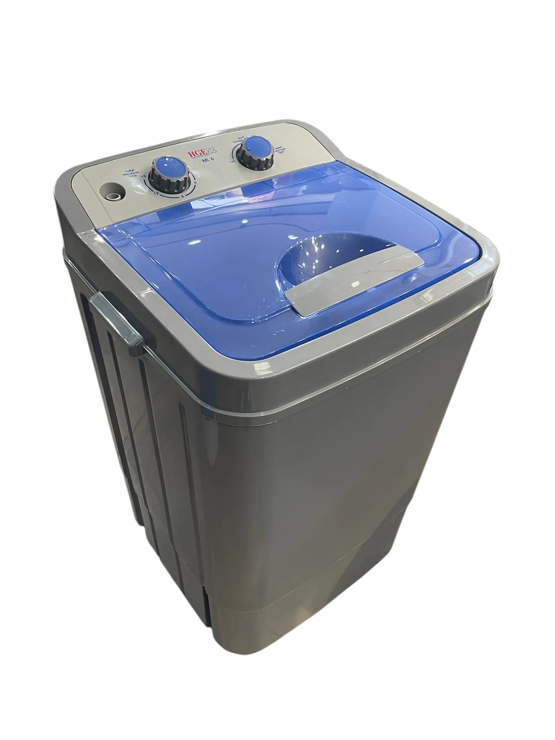 Machine à Laver Semi Automatique HGE ML6 – Capacité : 6 Kg – Nombre de Programmes : 2 Programmes de Lavage: Rinçage Séparé – Capacité d’essorage: 2.5 KG – Puissance: 320 W – Dispositif d’économie d’énergie – Accessoire: Bac d’essorage, – Utilisation: Laver les chaussures et les vêtement – Minuterie: 15 min – Dimensions : 64 x 37 x 39 cm – Couleur : gris – Garantie : 1 an