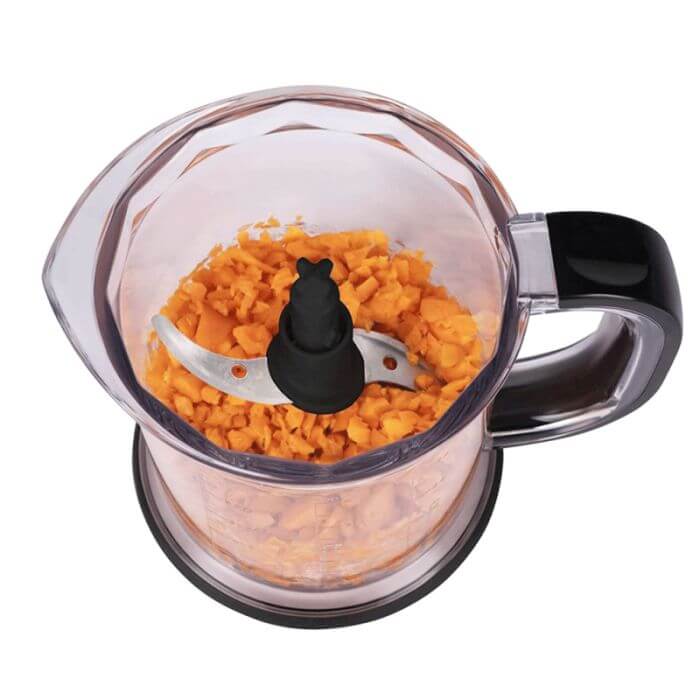 Mini Hachoir Pro ARNICA – Puissance: 500 Watts – CapacitĂ©: 1200 ml – Nombre de vitesse: 1 vitesse – 2 x lames en acier inoxydable  Bol en Plastique – Utilisation pratique – IdĂ©al pour hacher la viande, les cĂ©rĂ©ales, les noisettes, les oignons – Couleur: Noir – Garantie: 3 ans