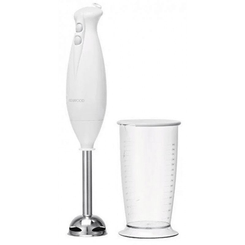 Mixeur plongeant KENWOOD – Puissance : 250W – CapacitĂ© Bol mĂ©langeur de 0.7 litres – Nombre de vitesses : 2 Vitesses – Lames en acier inoxydable – MatĂ©riau du corps : Plastique – PoignĂ©e ergonomique – Dimensions : 36 x 8 x 8 cm – Couleur : blanc – Garantie 1 an