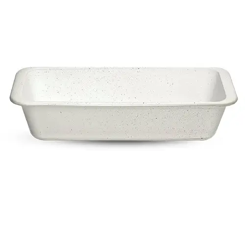 La céramique à la surface émaillée blanc cassé permet de découper et servir dans le plat.