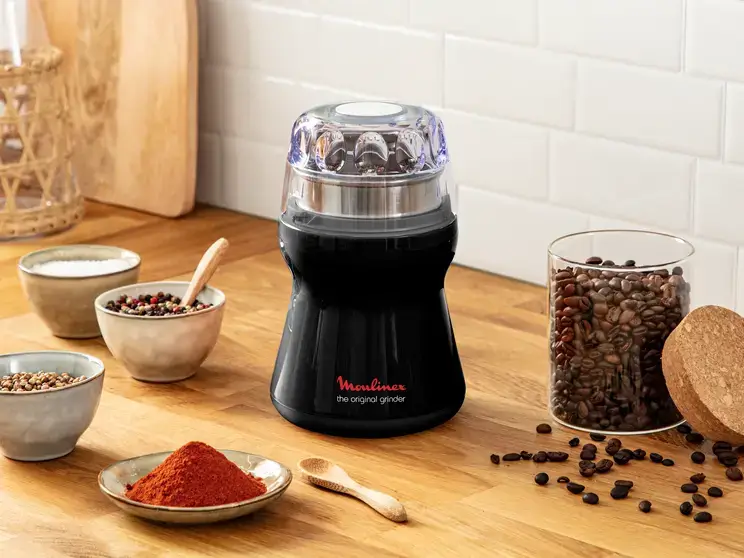 Moulin à Café Moulinex AR110830 – Puissance: 180 Watts – Capacité: 50 g – Lame en acier inoxydable – Bol en Acier inoxydable – Facile à utiliser – Un couvercle transparent – Couleur : Noir – Garantie : 1 an