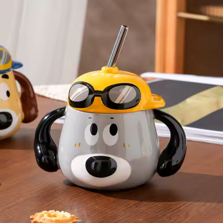 Tasse mignonne en forme de chien avec poignée à deux oreilles