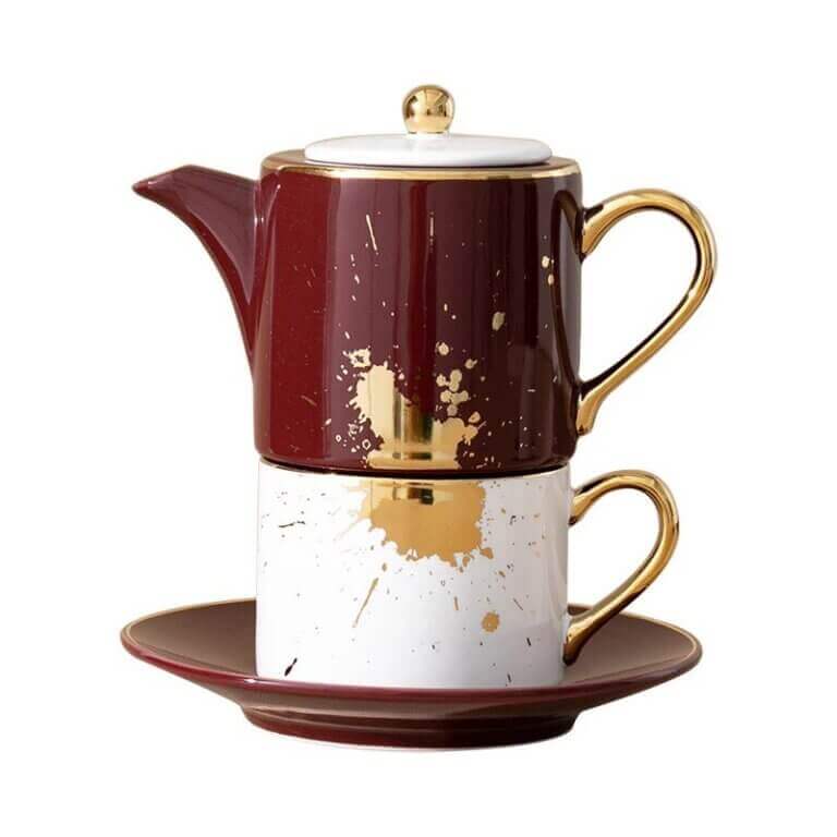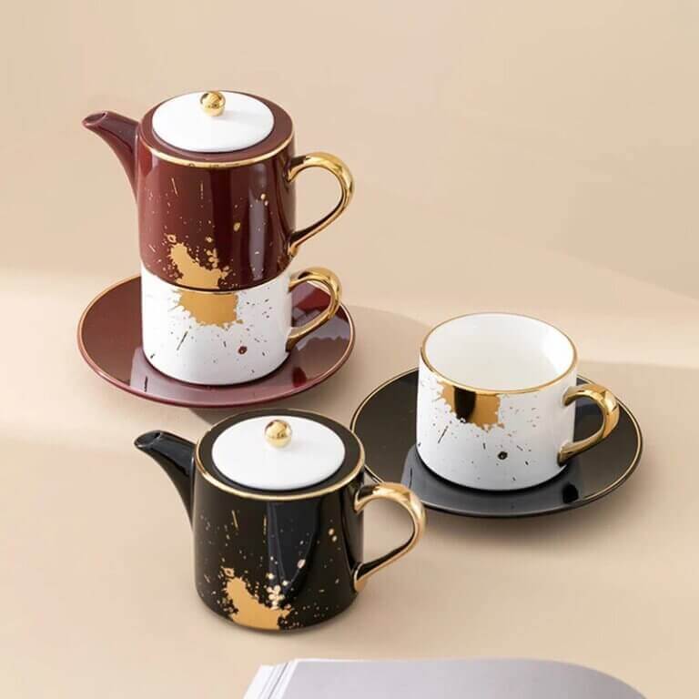 Service à thé moderne en céramique et marbre 3 pièces