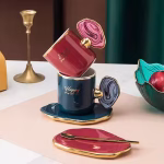 Ensemble de tasses Ă  cafĂ© et sous-tasses, style europĂ©en, avec poignĂ©e unique, en cĂ©ramique, pour service Ă  thĂ©, de bureau, pour l’après-midi, 160ML,
