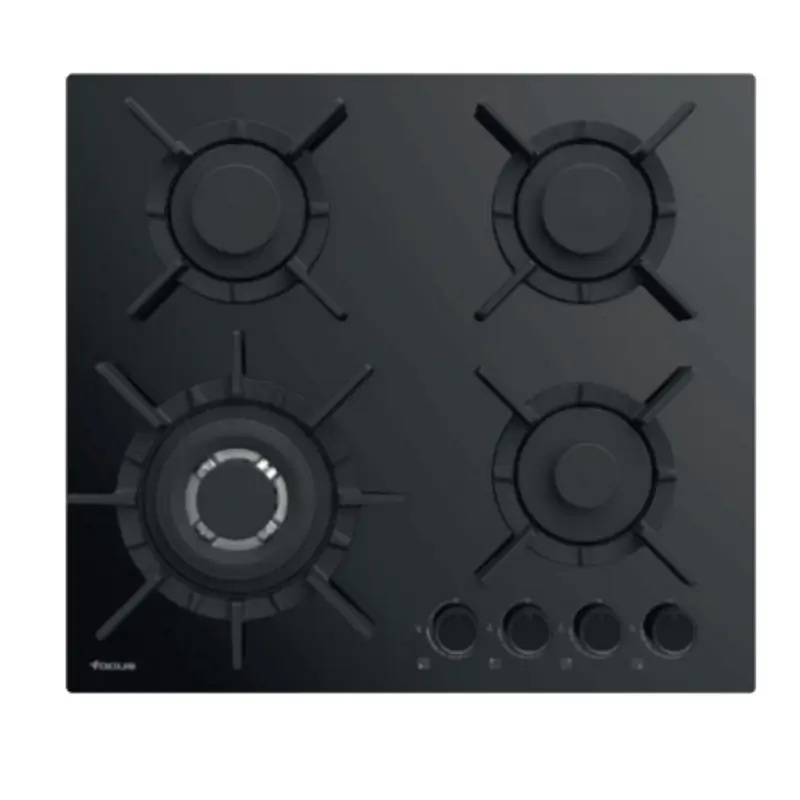 Plaque De Cuisson Encastrable Focus F.4015BS – Nombre de feux : 4 Feux – Largeur : 60cm – Allumage automatique – SĂ©curitĂ© Thermocouple – Commandes frontales – Flamme StabilisĂ©e – Grilles et Chapeaux en fonte – Dimensions: 51 x 590 x 520 mm – Couleur : Noir – Garantie : 2 ans