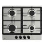 Plaque de Cuisson Encastrable FOCUS – Type de Plaque: à Gaz – Largeur: 60 cm – Nombre de feux: 4 feux – Grilles et chapeaux de brûleurs en fonte – Flamme stabilisée – Commandes Frontales – Allumage Automatique – Couleur: Inox – Garantie: 2 ans