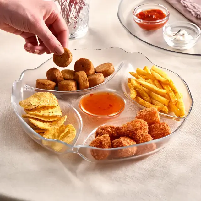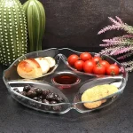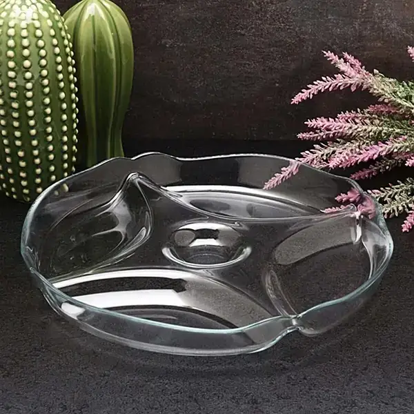 plat de service en verre avec divisions et un récipient pour les sauces 28 CM