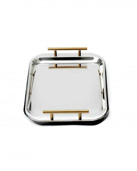 PLATEAU RECT EN INOX 50 CM JUGURTHA POIGNE DORE