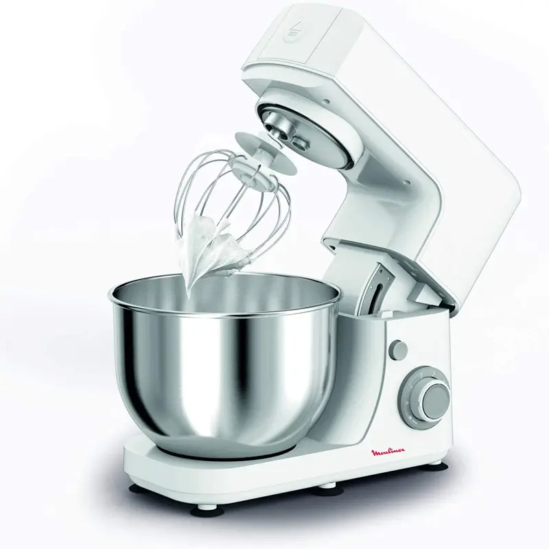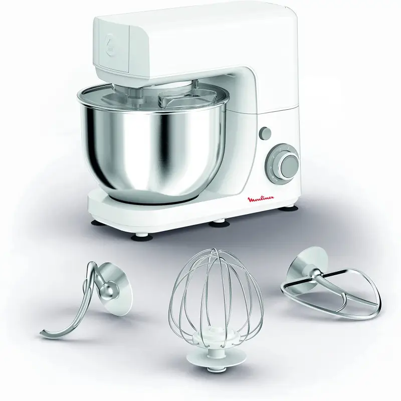 Robot Pâtissier Masterchef MOULINEX – Puissance 800 watts – capacité du bol: 4.8 litres – bol en acier inoxydable – 6 vitesses + pulse – Fonctionnalités: batteur, Fouet – Design robuste – Couleur Blanc – Garantie 1 an