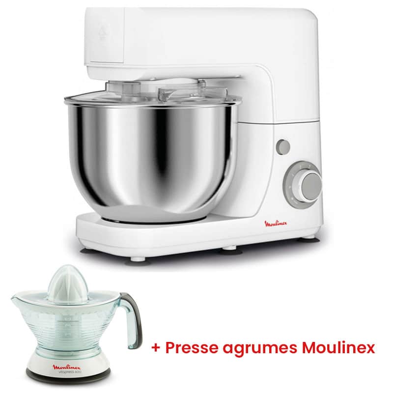 Kitchen Machine Essentiel – Puissance: 800W – Capacité du Bol : 4,8L – Nombre de vitesse: 6 vitesses + pulse – bol en acier inoxydable – Fonctionnalités: batteur, Fouet – Design robuste – Poids: 5 kg – Dimensions (L x l x h): 41.4 x 24.4 x 35.4 cm – Couleur: Blanc – Garantie : 1 an