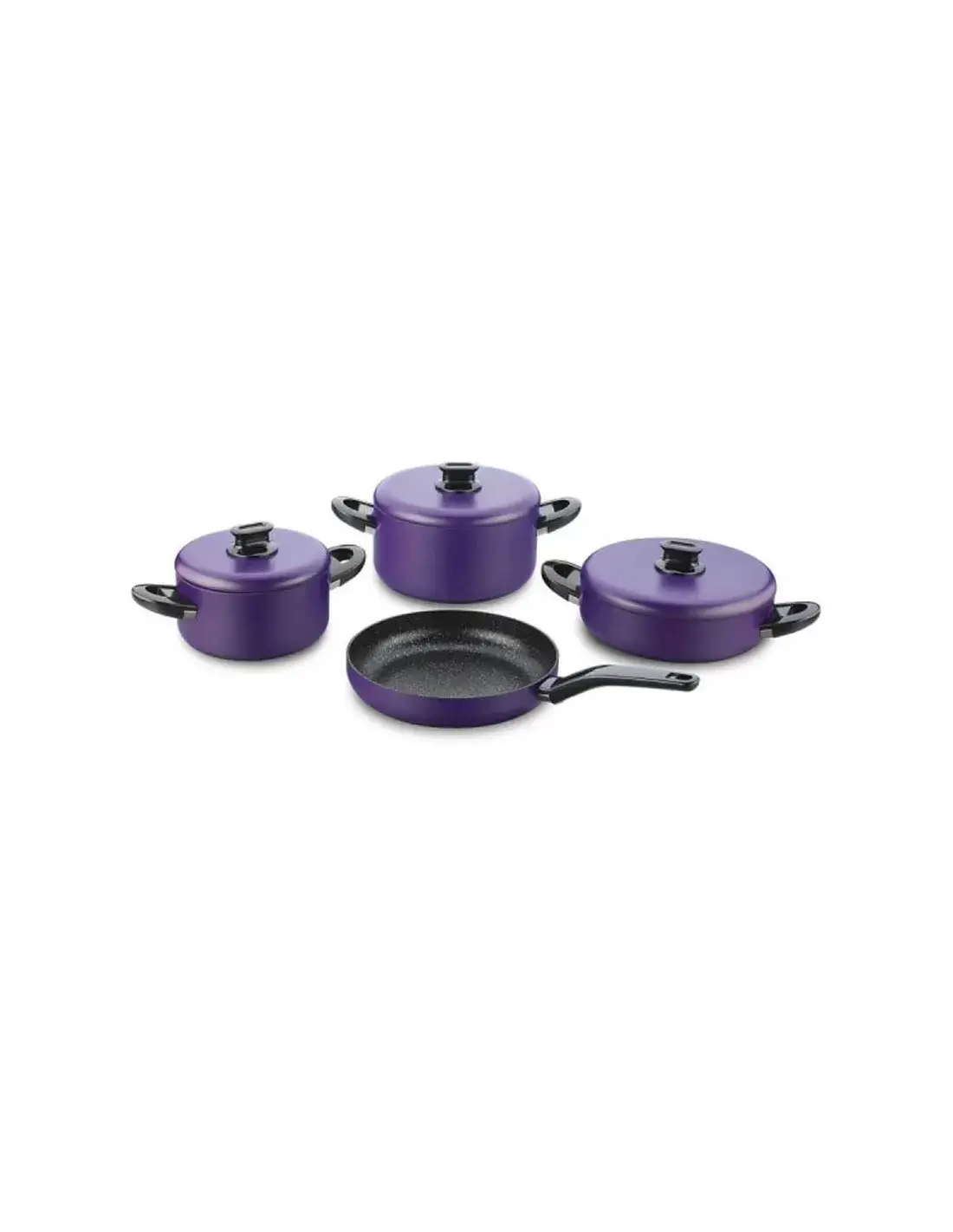 Réf : A1141-Faitout 20×10.5 cm / 3 litres + Faitout 26×7.5 cm / 3,5 litres + Faitout 24×12.5 cm / 5 litres + Poêle 26×5.5 cm / 2,5 litres – Les poêles et faitout revêtement pierre granité Plus offrent une grande résistance avec leur épaisseur , ils sont munis d’un fond granite pour une action anti-adhésive renforcée et une cuisson savoureuse – Couleur: Violet