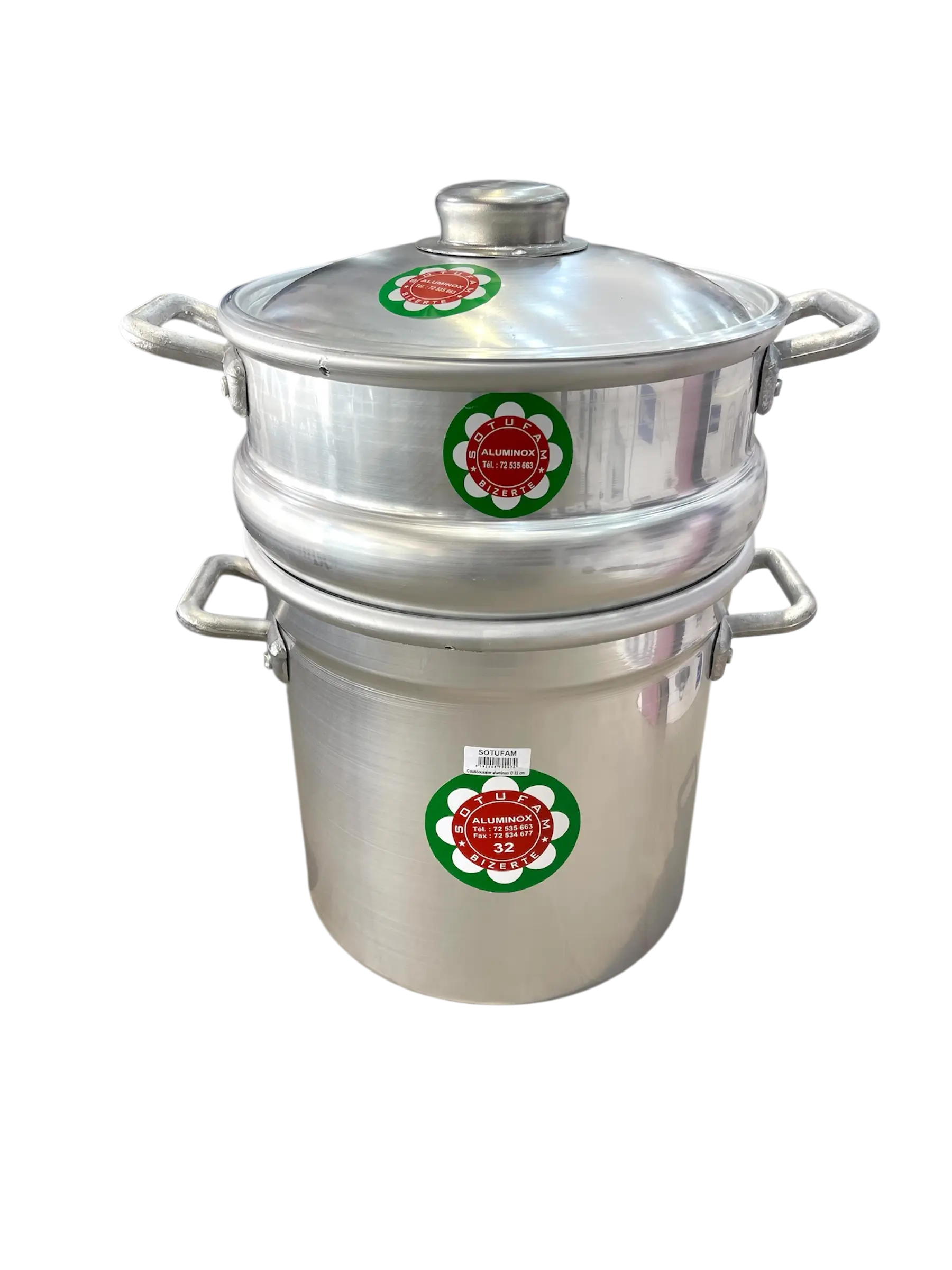 Sotufam Couscoussier – 32L – Aluminium Avec Couvercle – Gris