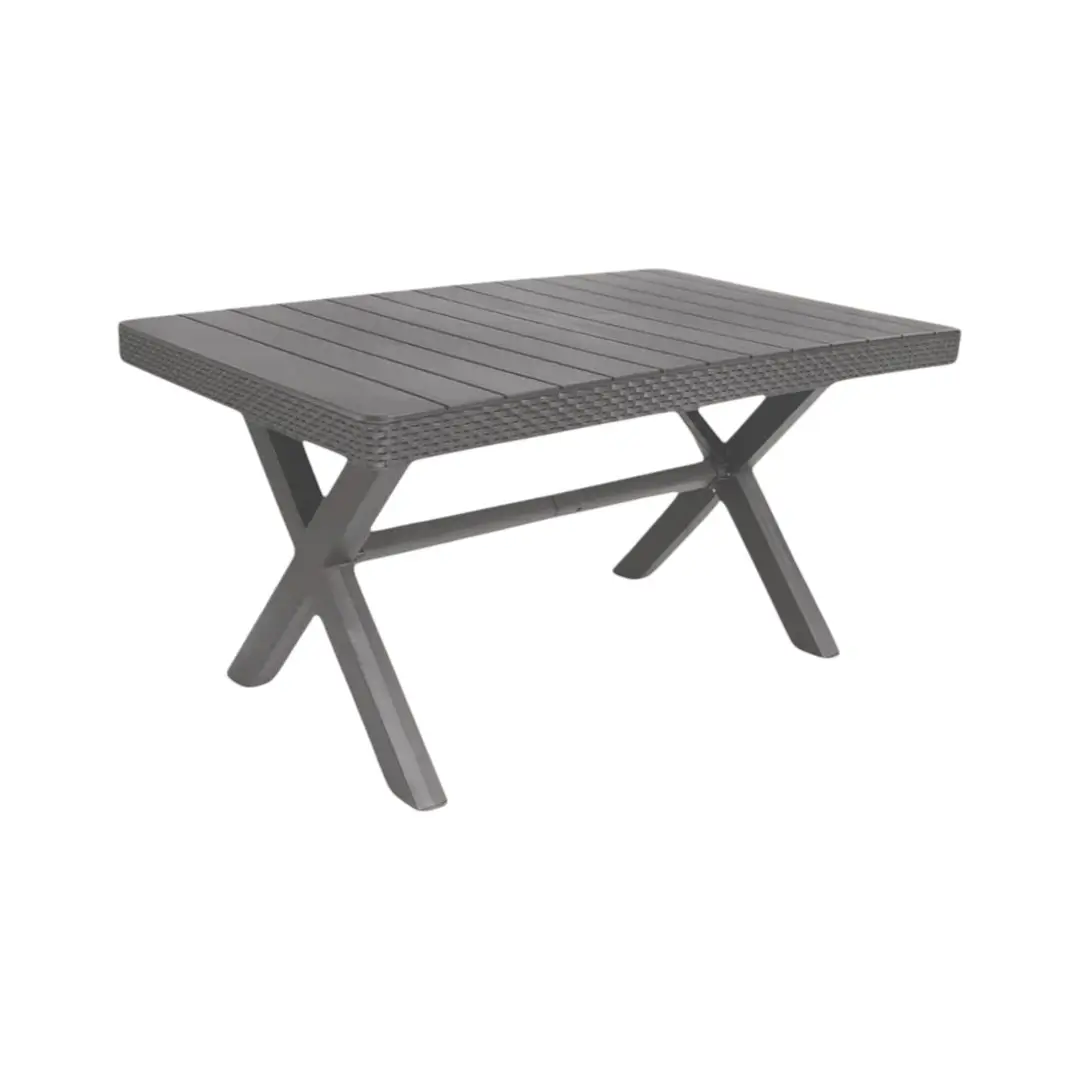 - Cette table rectangulaire repose sur quatre pieds en X, stables et résistants, dotés de sabots antidérapants pour une parfaite adhérence.